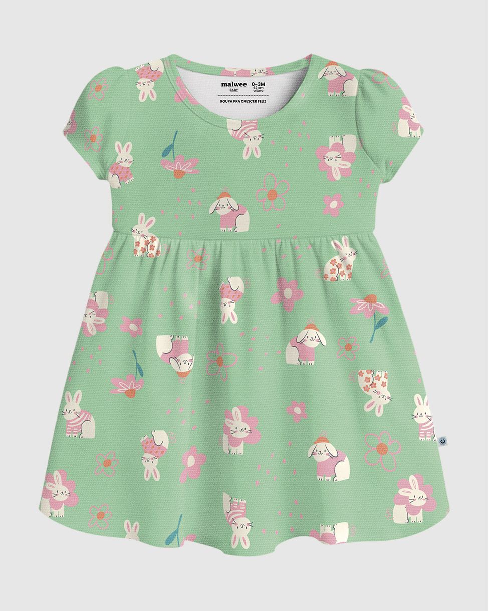 Vestido Bebê Menina Estampa Coelhinhos Em Malha Texturizada Malwee Kids