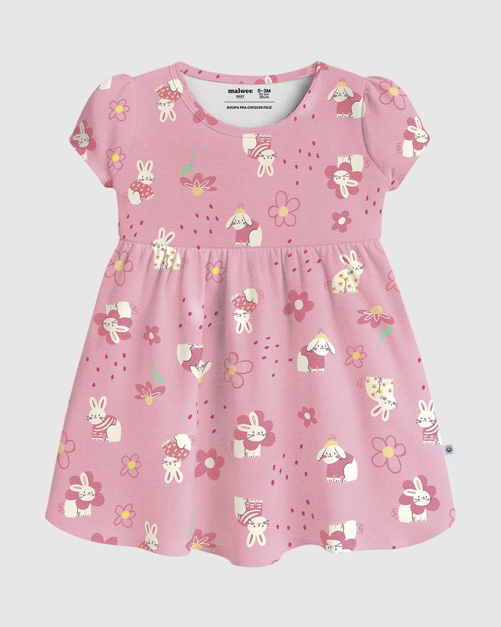 Vestido Bebê Menina Estampa Coelhinhos Em Malha Texturizada Malwee Kids