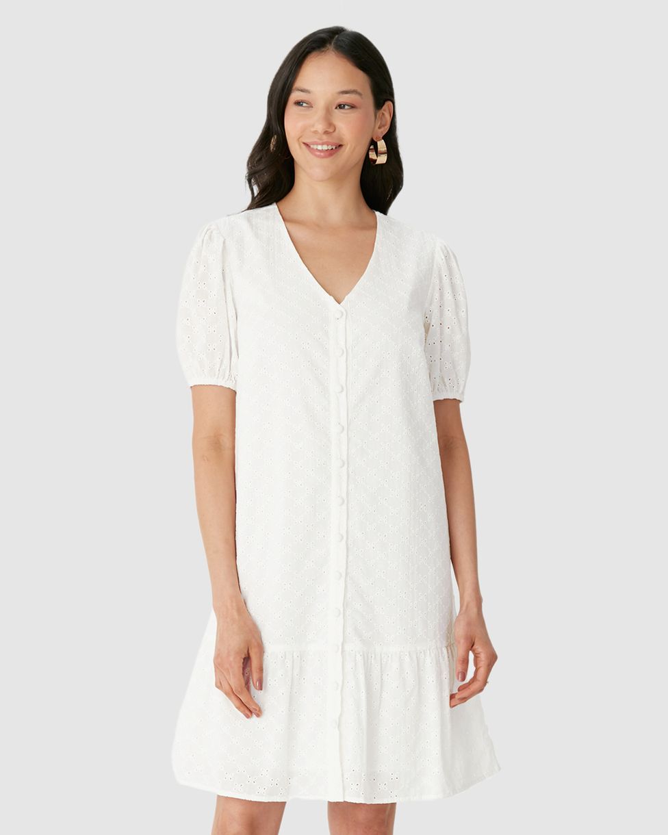 Vestido Feminino Decote V Abotoamento Frontal Em Laise Algodão Branco - G