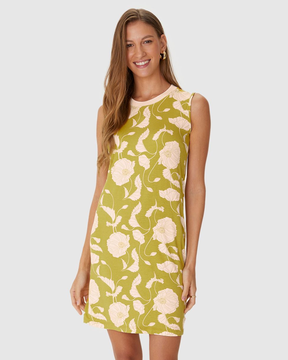 Vestido Feminino Estampado Decote U Retilínea Em Malha Viscolinho Stretch