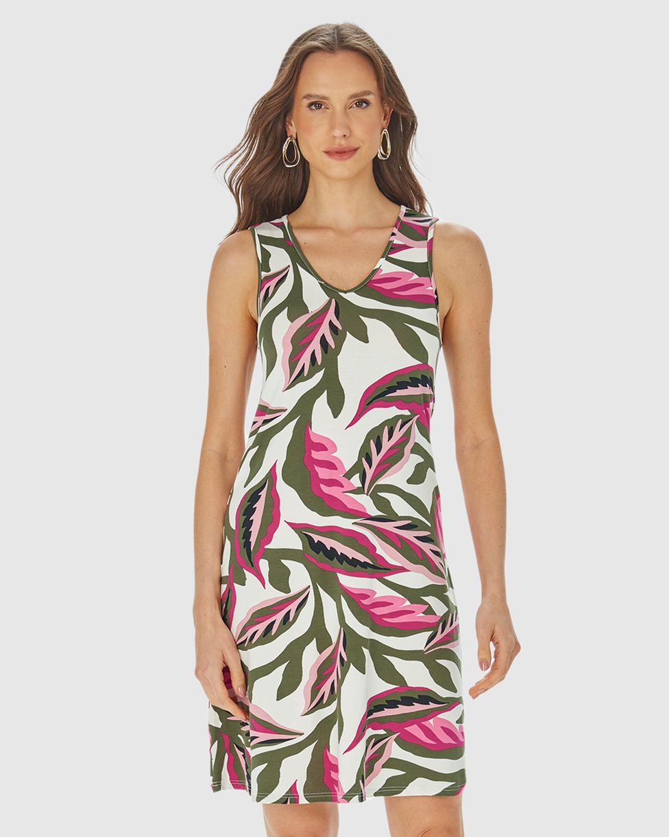 Vestido Feminino Estampado Decote V Em Viscose Stretch
