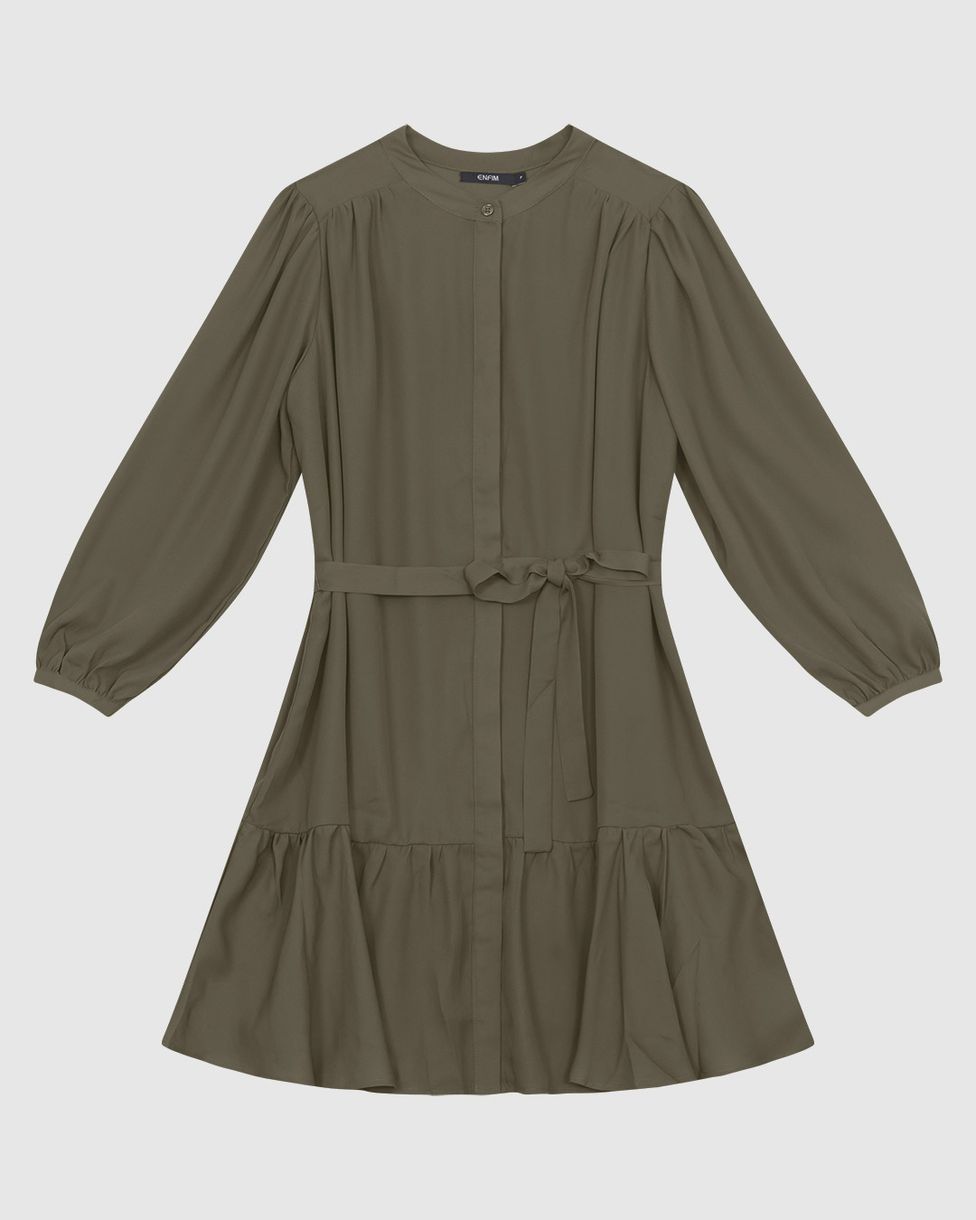 O Vestido Evasê Enfim une romantismo e modernidade. Em crepe leve, oferece fluidez e conforto único. Possui mangas 7/8, fechamento por botão e acompanha cinto para definir a silhueta, sendo perfeito para transitar do trabalho ao lazer com a versatilidade da nossa coleção Outono/Inverno.