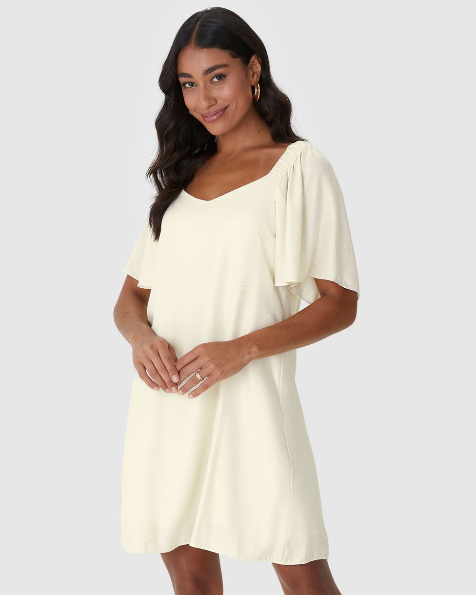 FemininoVestidosVestidos CurtosVestido Feminino Evasê Manga Com Franzido Em Viscose Lurex