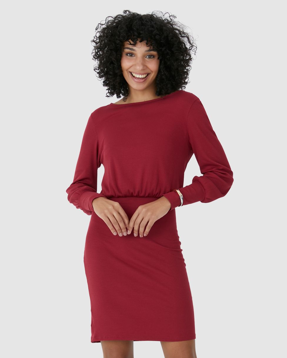 Vestido Feminino Manga Longa Em Malha Viscose Canelada