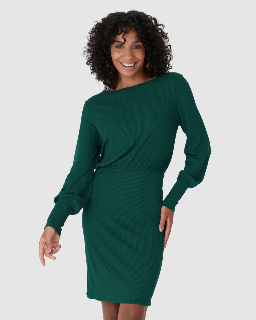 Vestido Feminino Manga Longa Em Malha Viscose Canelada