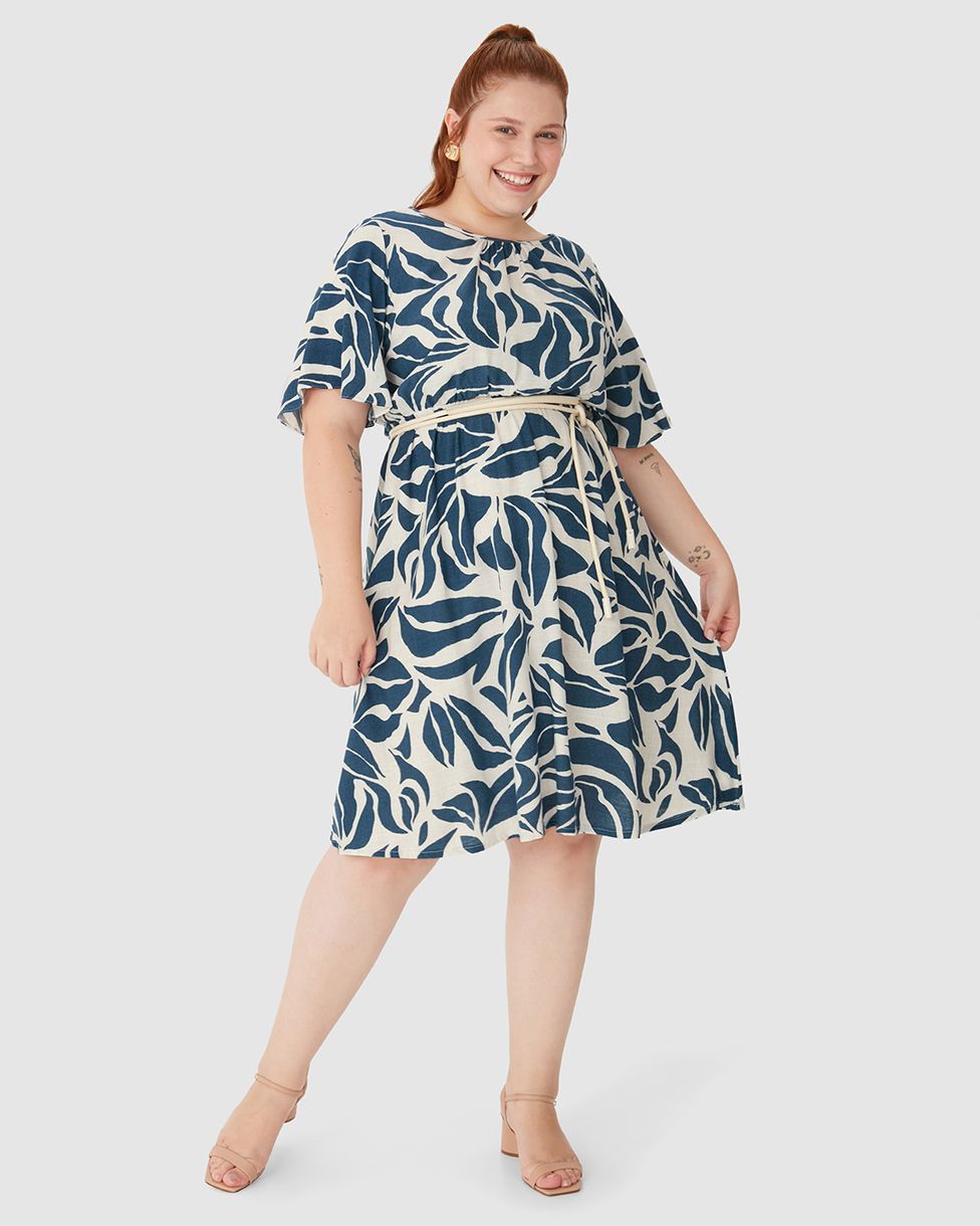 Plus SizeFemininoVestidosVestido Feminino Plus Size Acinturado Em Viscolinho Texturizado