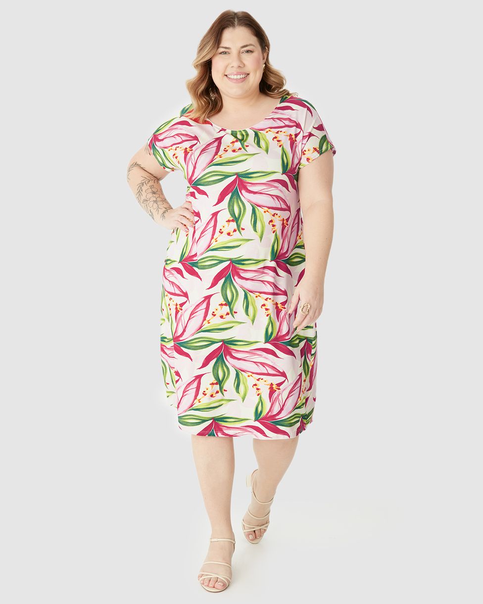 Vestido Feminino Plus Size Reto Estampa Digital Em Viscose Stretch