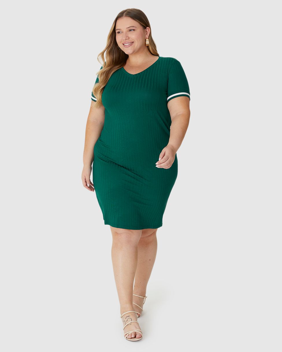Vestido Feminino Plus Size Reto Manga Retilínea Em Canelado De Viscose