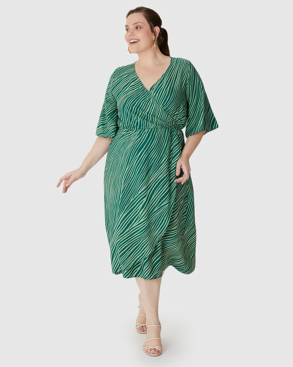 Vestido Feminino Plus Size Reto Transpassado Estampa Abstrata Em Viscose