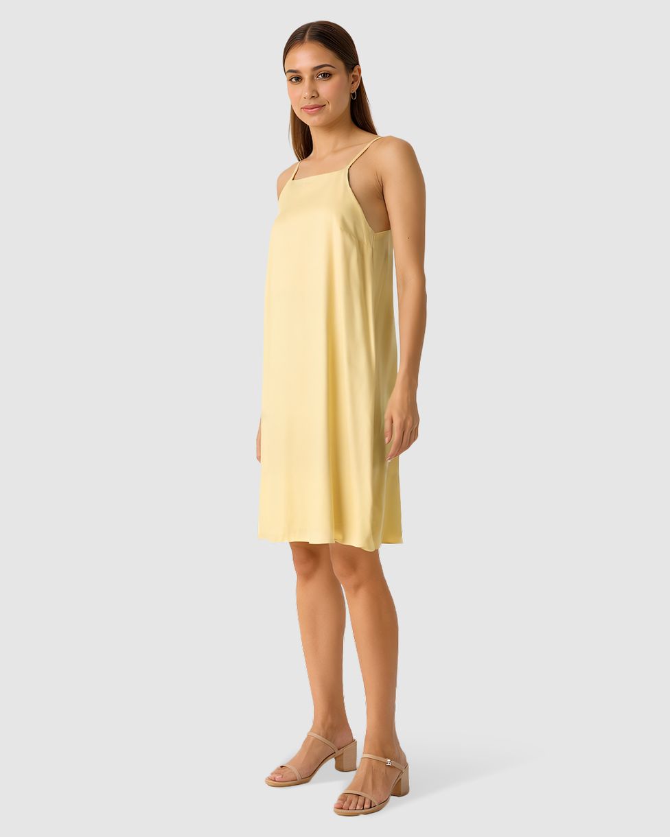 Vestido Feminino Reto Alça Fina Em Crepe De Viscose