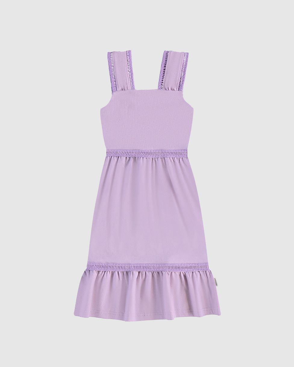 Vestido Infantil Acinturado Alça Diferenciada Em Malha Linho Malwee Kids
