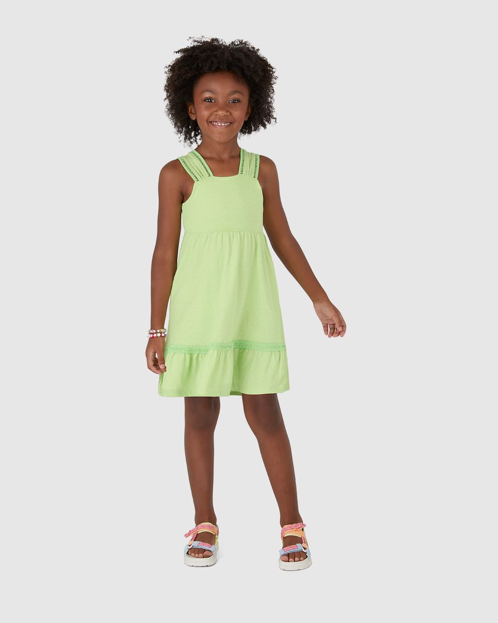 Vestido Infantil Acinturado Alça Diferenciada Em Malha Linho Malwee Kids