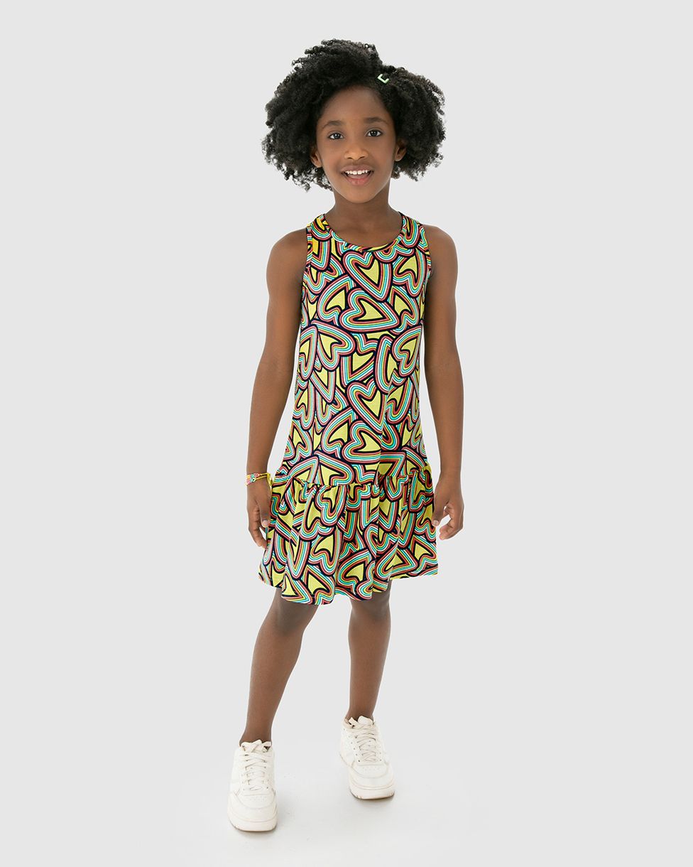 Vestido infantil confeccionado em malha de algodão. Apresentando um vestido estampado, essa peça conta com decote redondo, alças médias, barra franzida e estampa corrida. As peças da Malwee Kids são Comfortáveis, versáteis, modelagens e cores atuais e visual descolado para todos os momentos. São roupas que duram tanto quanto a energia das crianças. Para um visual mais urbano, o ideal é usar com tênis!