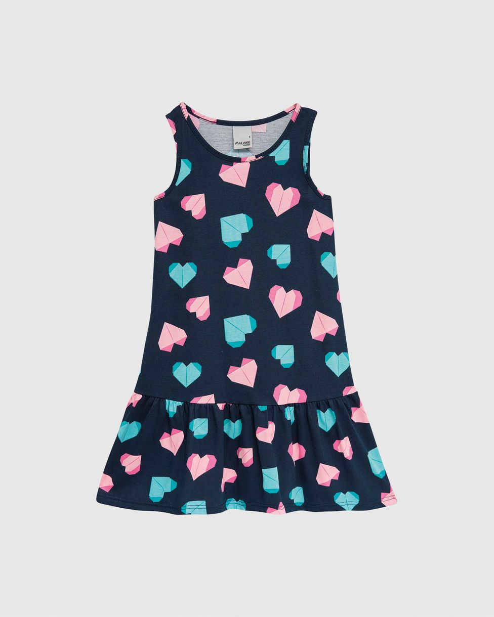 Vestido infantil confeccionado em malha de algodão. Apresentando um vestido estampado, essa peça conta com decote redondo, alças médias, barra franzida e estampa corrida. As peças da Malwee Kids são Comfortáveis, versáteis, modelagens e cores atuais e visual descolado para todos os momentos. São roupas que duram tanto quanto a energia das crianças. Para um visual mais urbano, o ideal é usar com tênis!