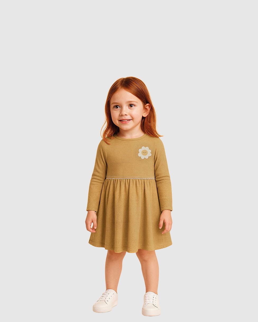 O Vestido Curto Rodado Acinturado Malwee Kids é o toque de doçura que faltava no guarda-roupa da sua garota para o Outono Inverno. Feito em malha texturizada, ele une elegância e conforto, destacando-se pelo delicado aplique de florzinha no peito, ideal para momentos especiais.