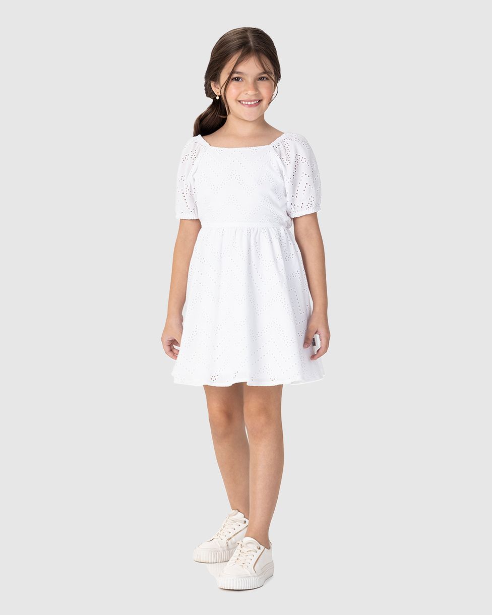 Vestido Infantil Decote Quadrado Em Laise Algodão Malwee Kids