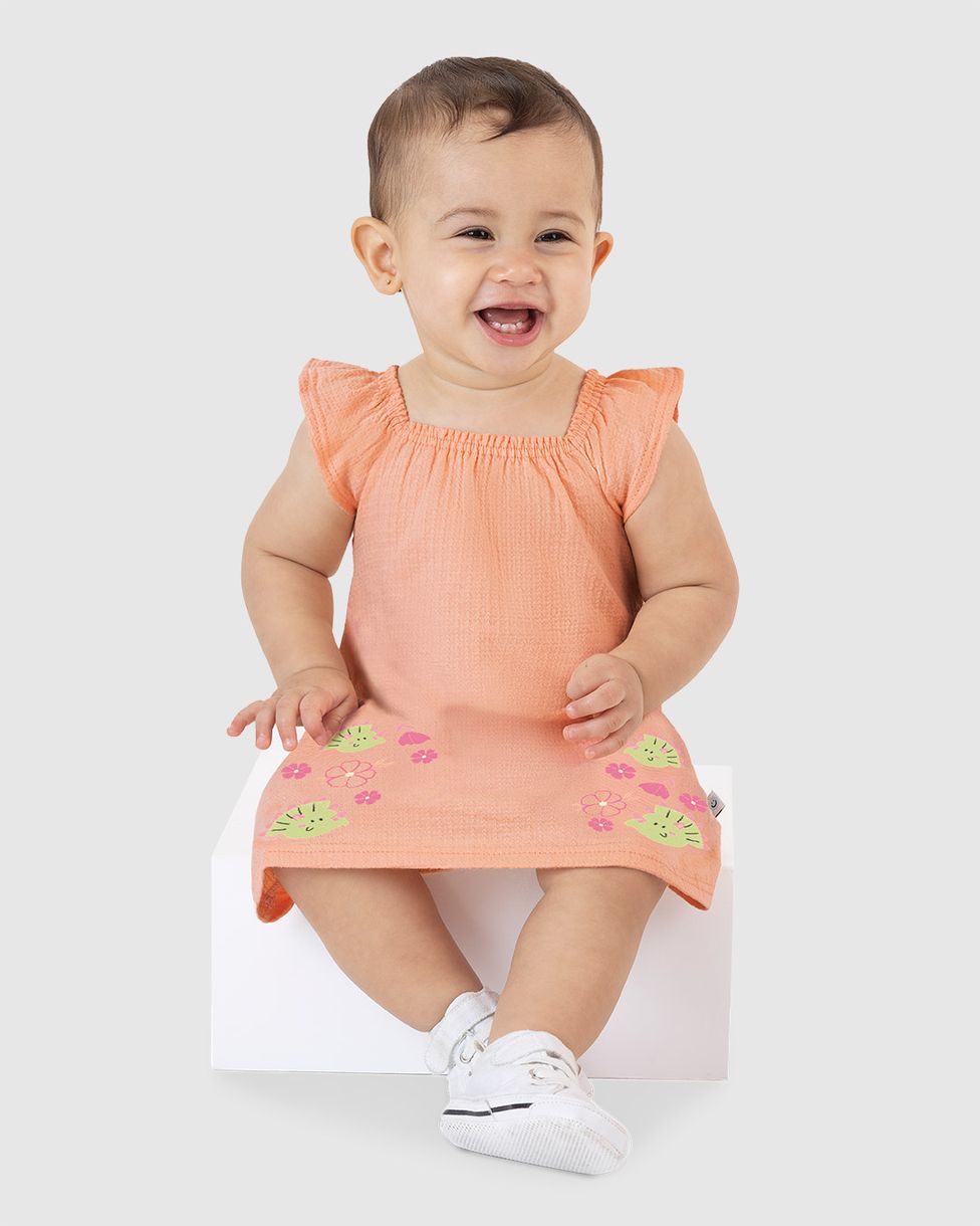 Vestido Infantil Decote Quadrado Em Malha Texturizada Malwee Kids Laranja - 12M