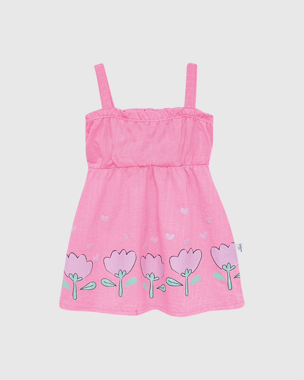Vestido Infantil Decote Reto Com Elástico Em Malha Texturizada Malwee Kids
