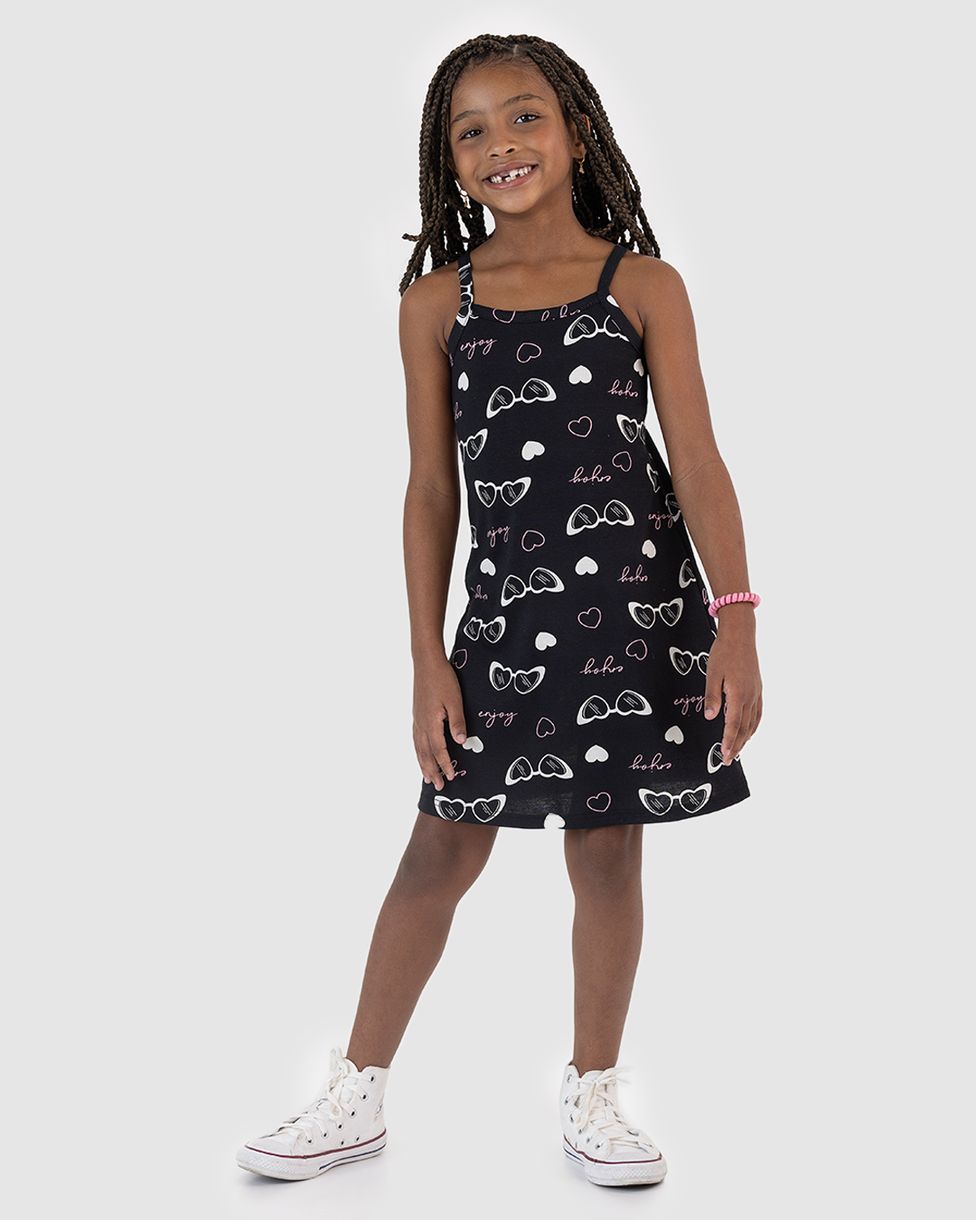 Vestido Infantil Decote Reto Estampado Em Algodão Malwee Kids Preto - 10