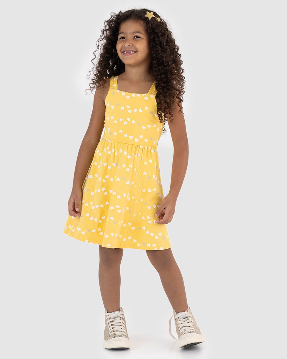 Vestido Infantil Estampa Corações Com Glitter Em Algodão Malwee Kids Amarelo - 10