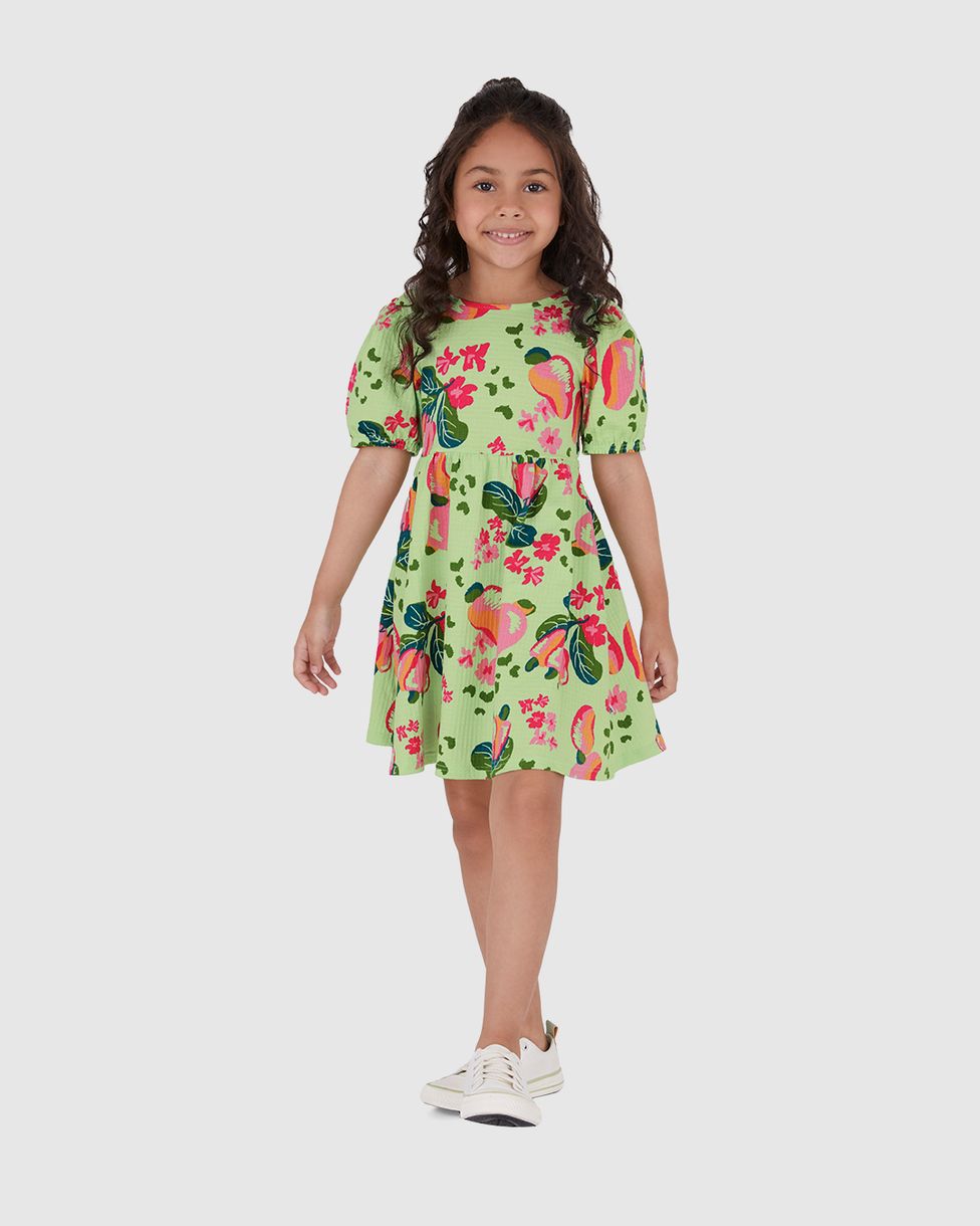 Vestido Infantil Estampa Frutas Costas Vazada Em Malha Texturizada Malwee Kids