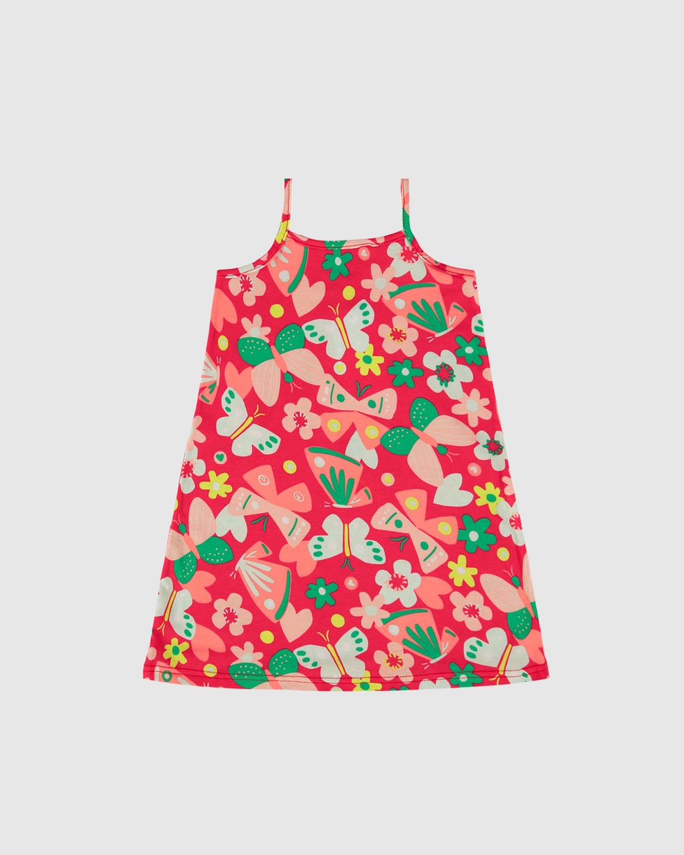Vestido Infantil Estampado Alça Fina Em Algodão Malwee Kids