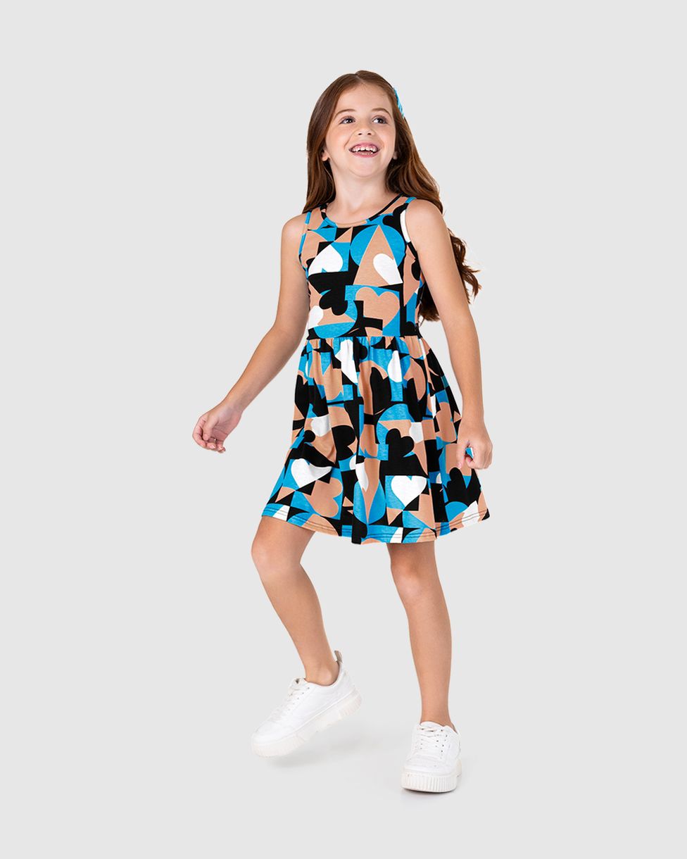 Vestido infantil confeccionado em malha de algodão. Apresentando um vestido estampado, essa peça conta com decote redondo, alças largas e estampa corrida. As peças da Malwee Kids são Comfortáveis, versáteis, modelagens e cores atuais e visual descolado para todos os momentos. São roupas que duram tanto quanto a energia das crianças. Para um visual mais urbano, o ideal é usar com tênis!
