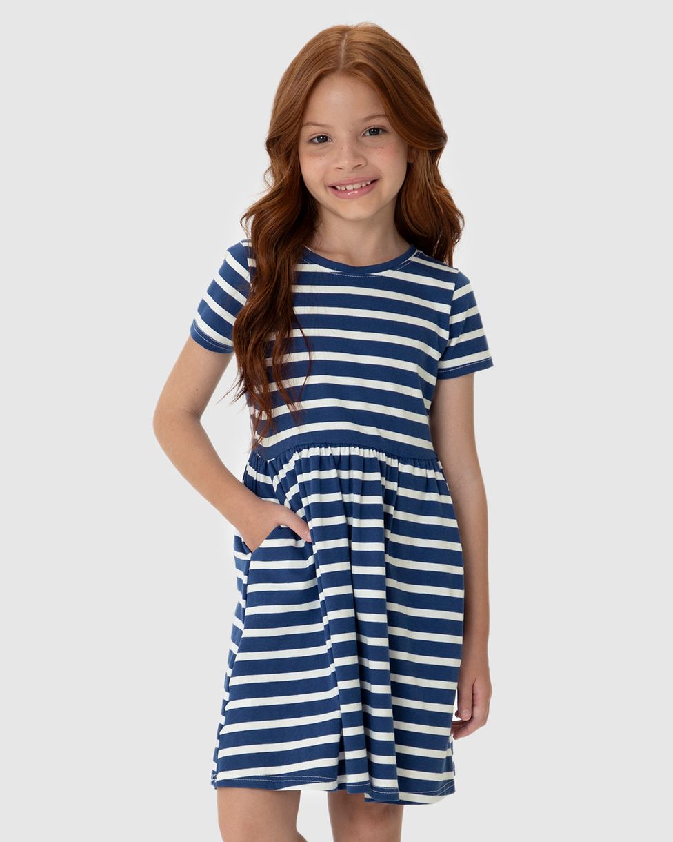 InfantilVestidosVestidos CurtosVestido Infantil Evasê Listrado Em Malha Algodão Malwee Kids