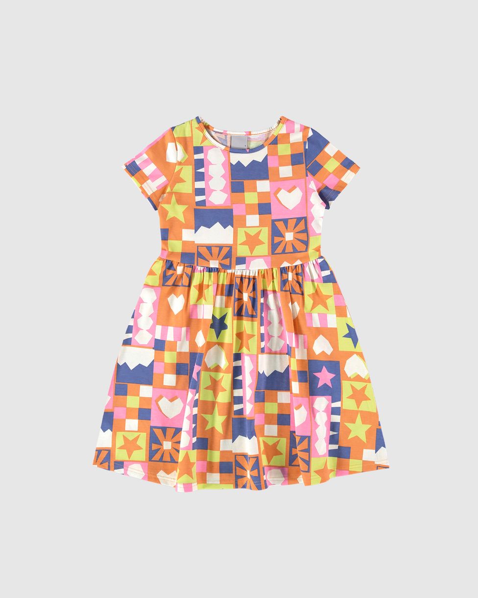 Vestido Infantil Evasê Manga Curta Estampado Em Algodão Malwee Kids