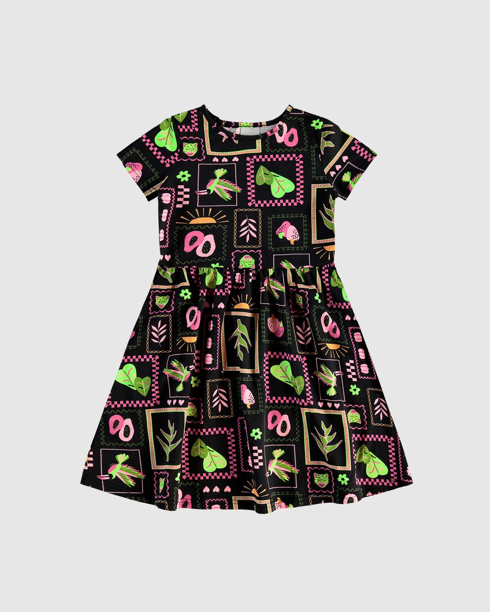 InfantilVestidosVestidos CurtosVestido Infantil Evasê Manga Curta Estampado Em Algodão Malwee Kids