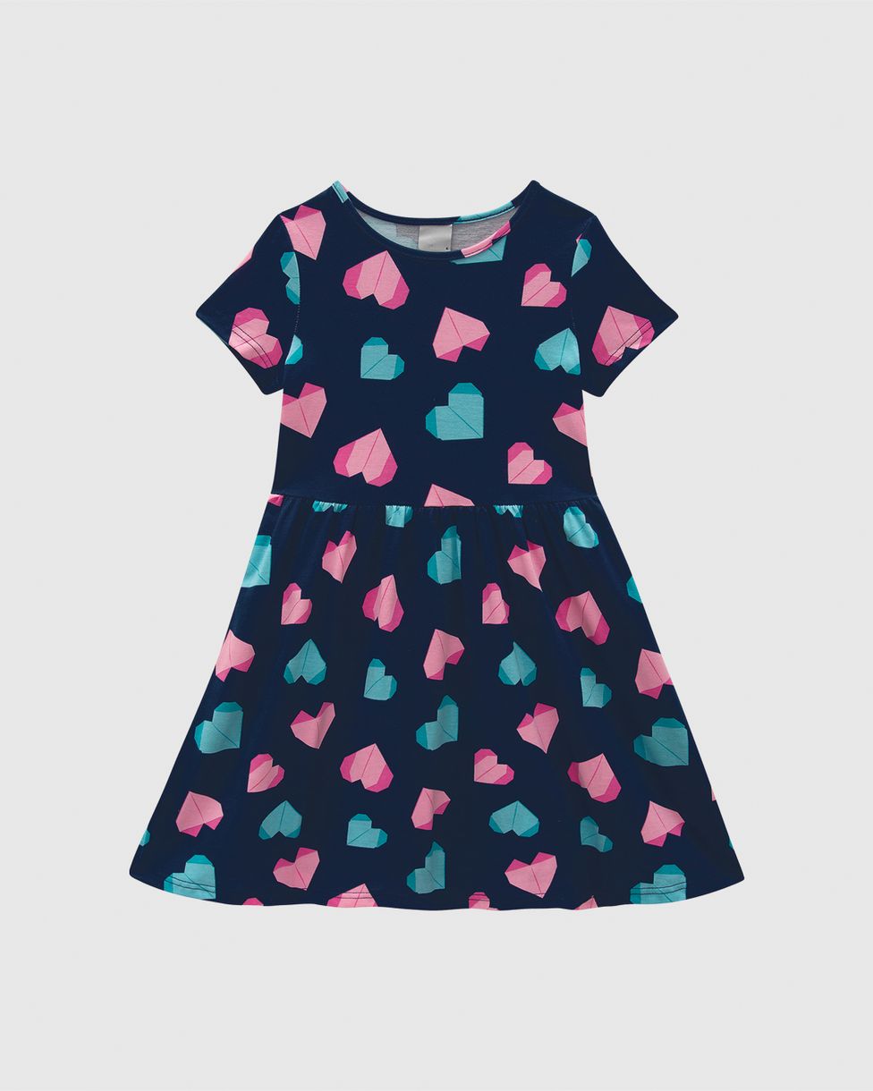 InfantilVestidosVestidos CurtosVestido Infantil Evasê Manga Curta Estampado Em Algodão Malwee Kids