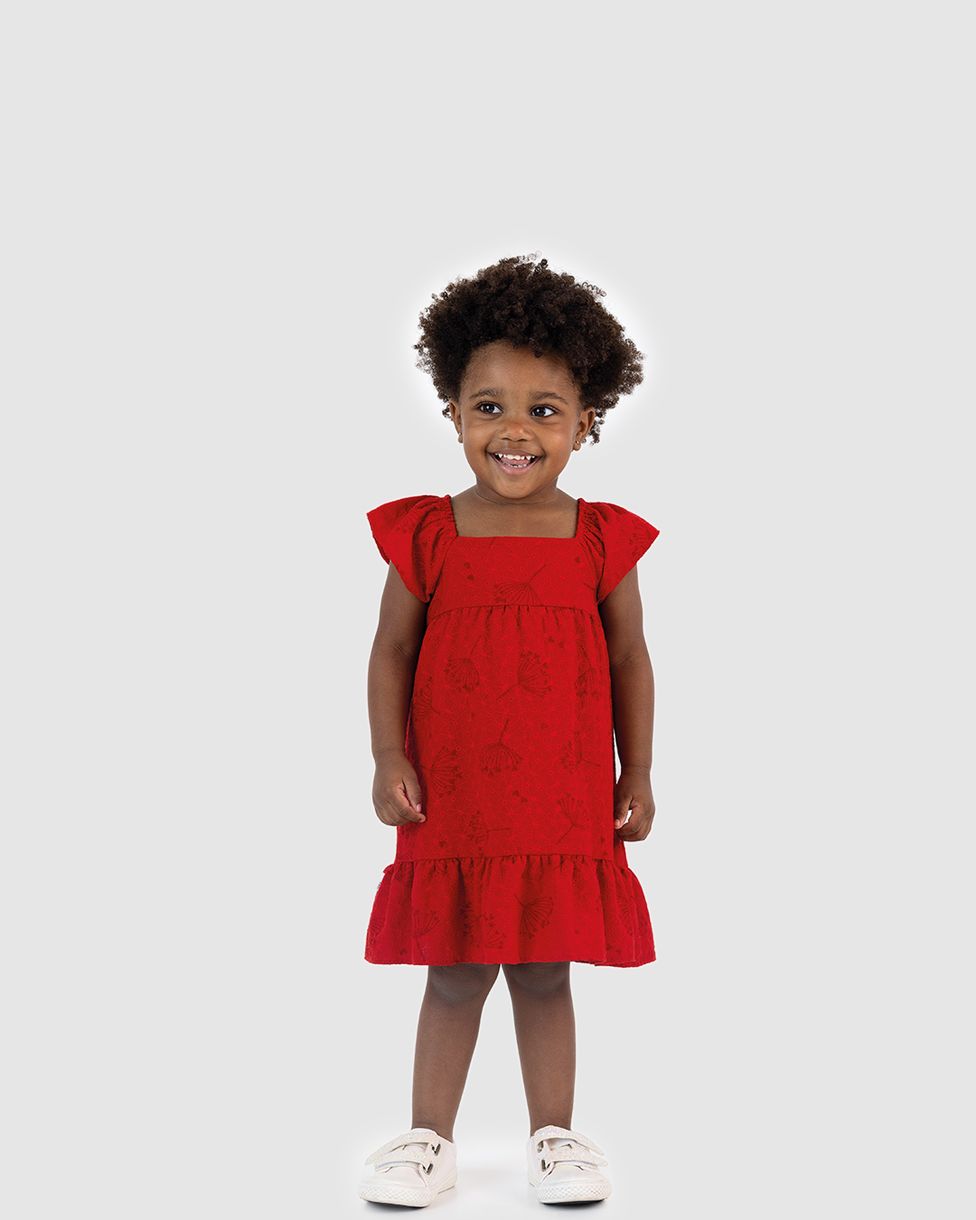 Vestido Infantil Manga Evasê Estampa Floral Em Laise Algodão Malwee Kids Vermelho - 1