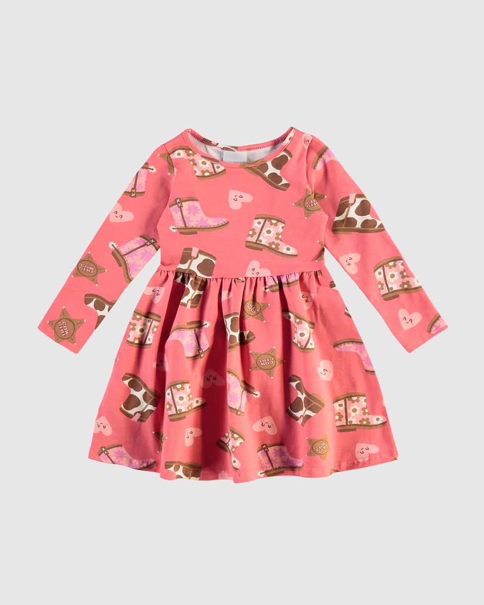 Vestido Infantil Manga Longa Estampado Em Algodão Malwee Kids