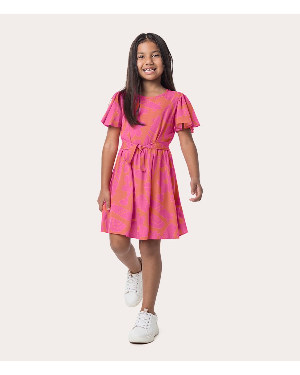 Vestido confeccionado em viscose conforto. Modelo possui comprimento curto, mangas curtas evasê . A viscose conforto é um tecido que proporciona bom caimento além de ser muito confortável. Um vestido leve e ideal para combinação entre mães e filhas. Invista com tênis slip on e deixe sua pequena confortável para o dia a dia!