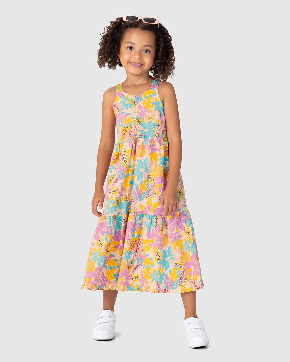 Vestido Infantil Midi Marias Estampado Em Malha Texturizada Malwee Kids