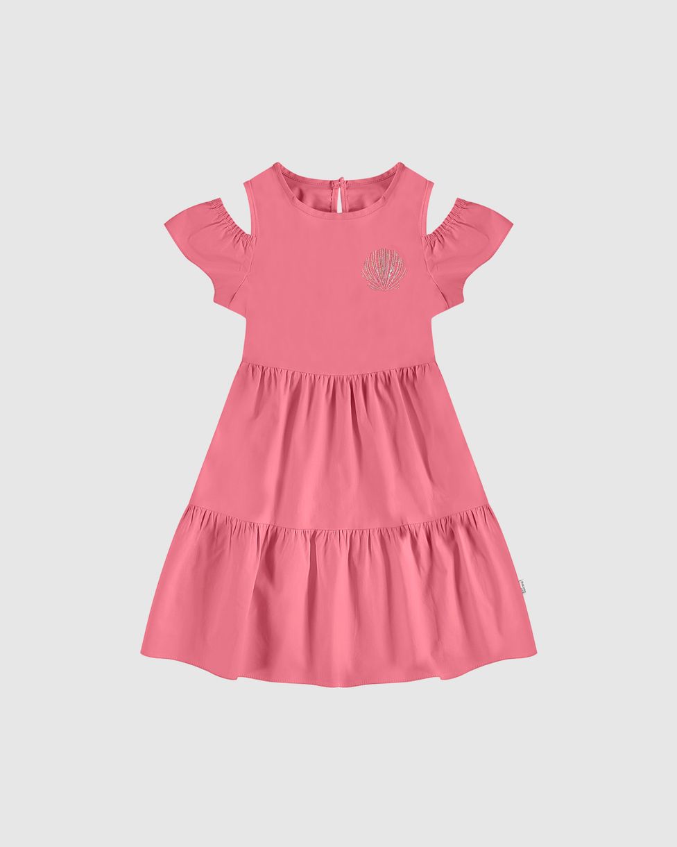 Vestido Infantil Recorte No Ombro Em Algodão Stretch Malwee Kids