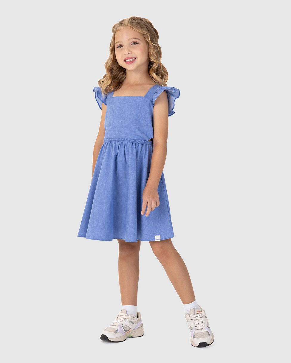 Vestido Infantil Rodado Alça Babado Em Algodão Chambray Malwee Kids