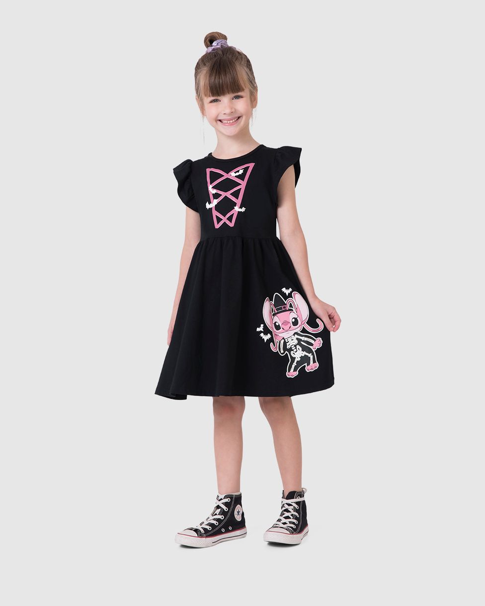Vestido Infantil Rodado Halloween Stitch Disney Em Algodão Malwee Kids