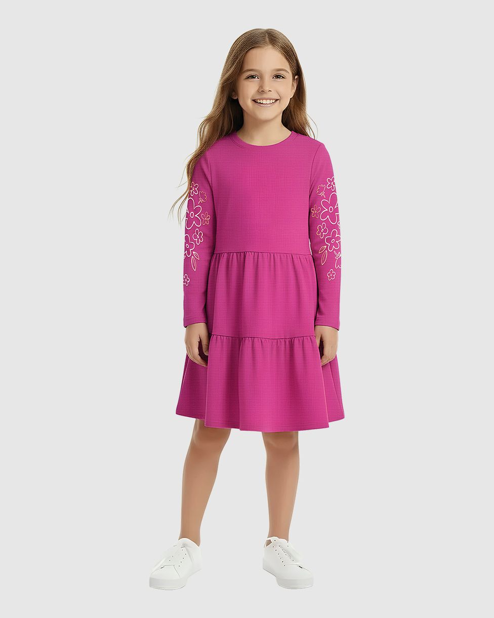 Vestido Infantil Rodado Manga Longa Com Estampa Puff Malwee Kids