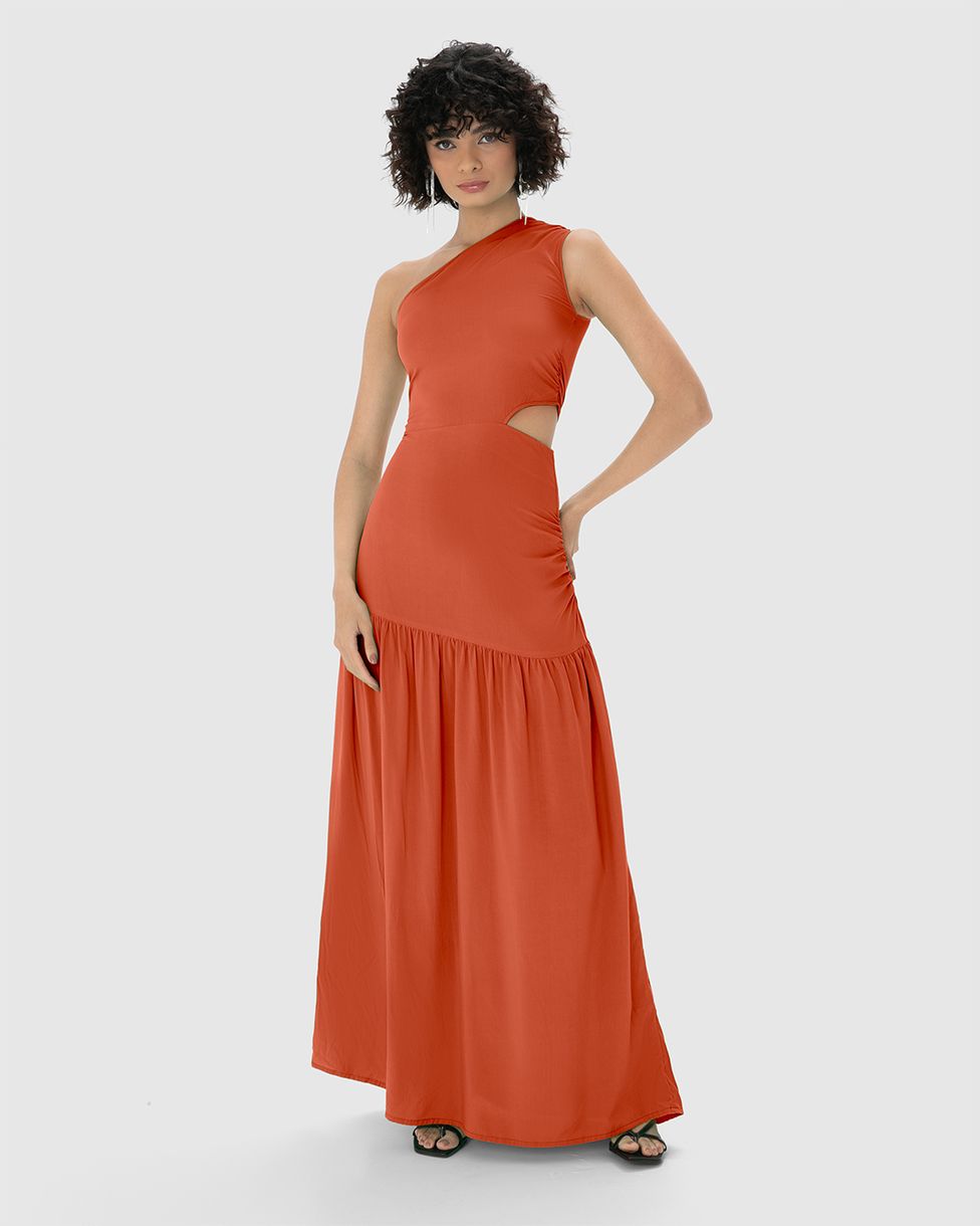 Vestido Longo Feminino Assimétrico Decote Ombro Só Em Viscose - ENFIM