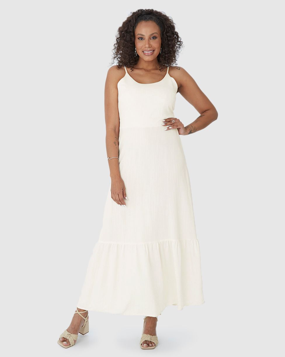 • Vestido Longo Amplo Em Viscolinho Texturizado