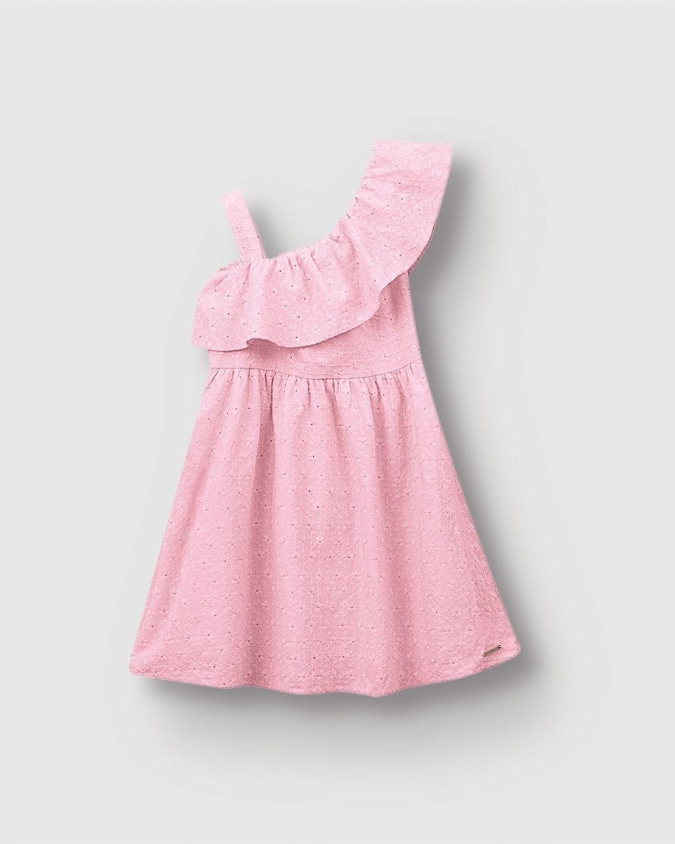 Vestido Menina Acinturado Alça E Babado Em Tecido Bordado - Carinhoso
