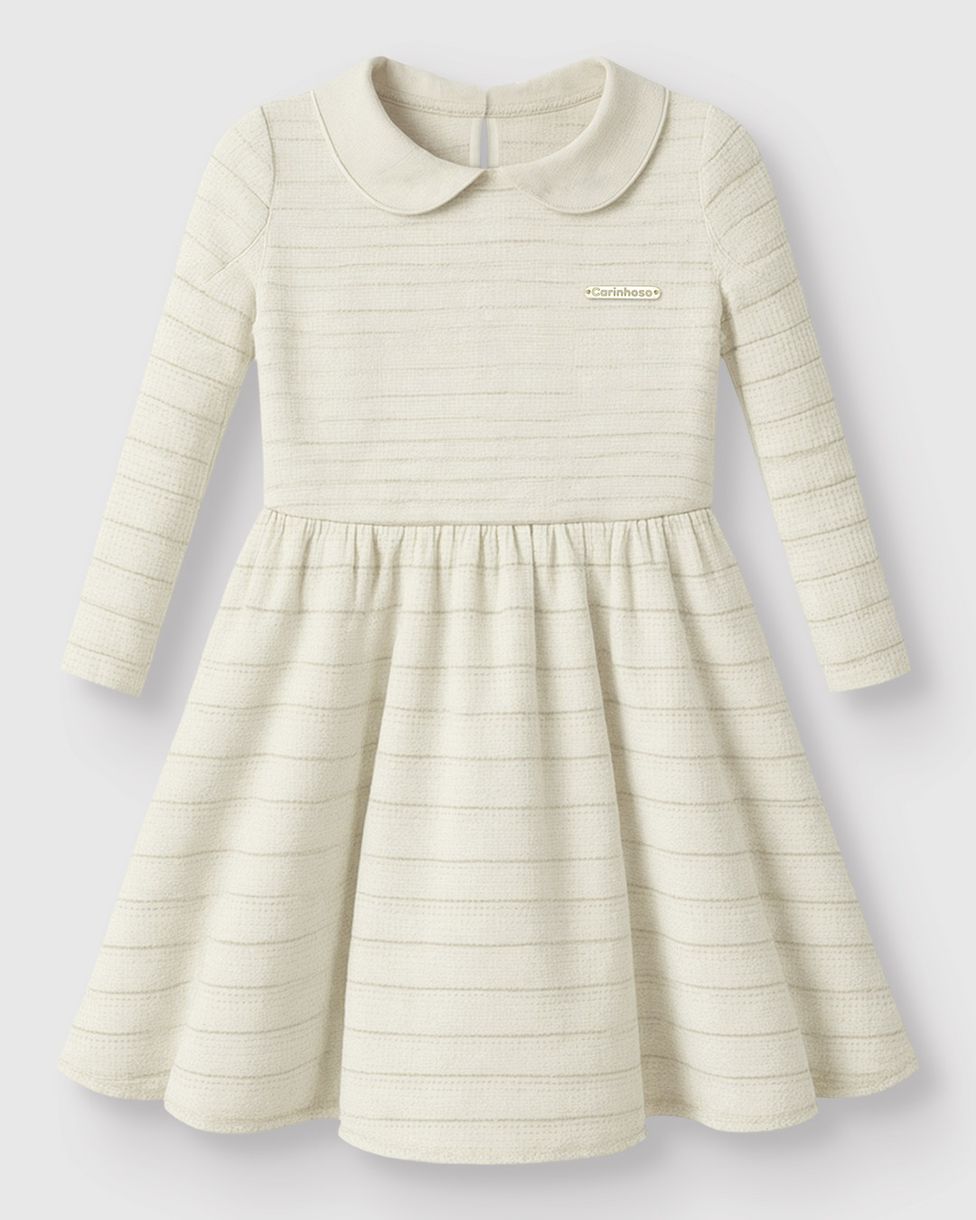 O Vestido Menina Acinturado Manga Longa Em Malha Tweed Lurex da Carinhoso é sinônimo de elegância clássica para as crianças. Com gola boneca contrastante e brilho sutil, este modelo curto rodado une o toque sofisticado do tweed ao conforto necessário para momentos especiais.