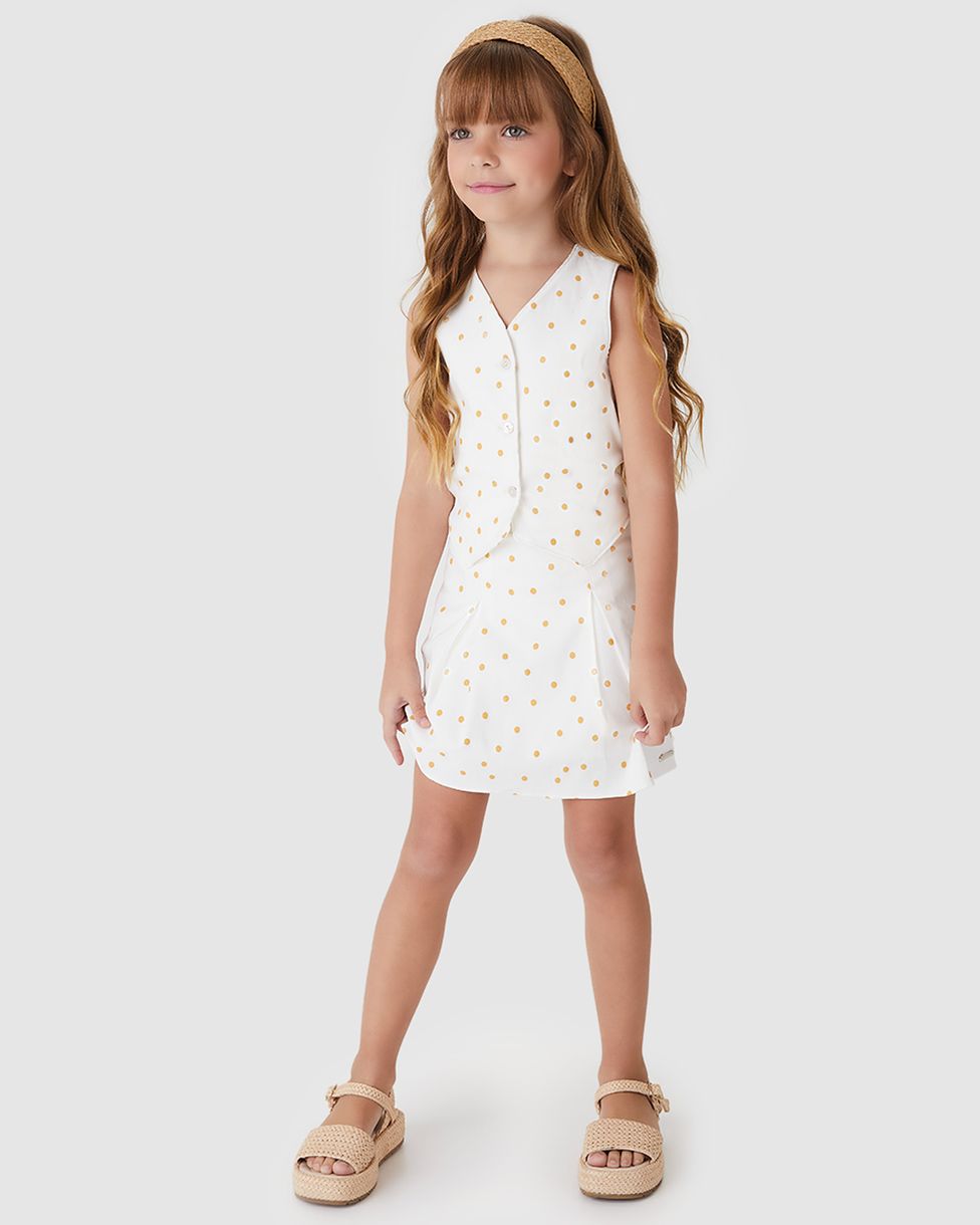 Vestido Menina Alfaiataria Estampa Poá Botões Frontais Bengaline - Carinhoso Off White - 10