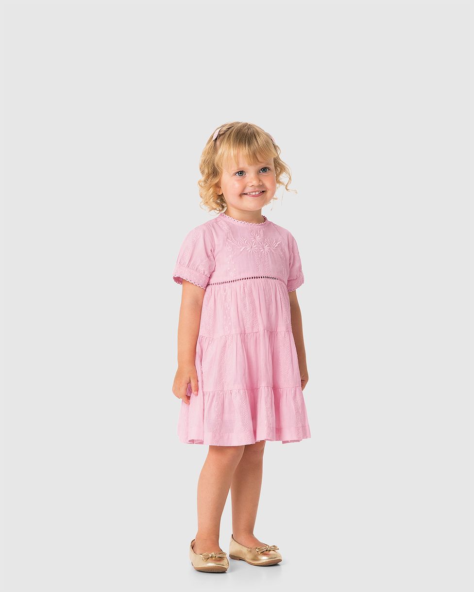Vestido Menina Amplo Abertura Botões Costas Em Laise Algodão - Carinhoso