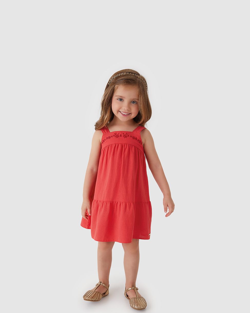 Vestido Menina Amplo Com Bordado Floral Em Viscolinho Texturizado - Carinhoso Vermelho - 1