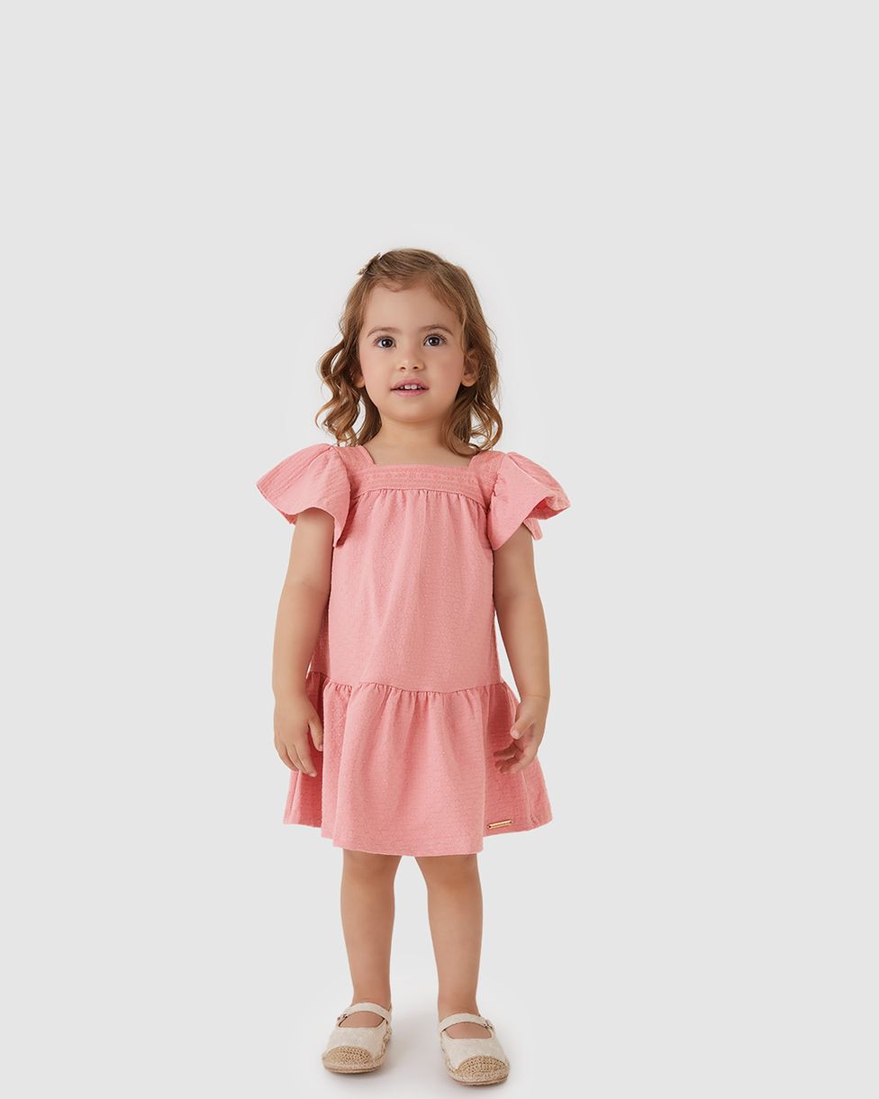 Vestido Menina Amplo Decote Quadrado Em Malha Texturizada - Carinhoso Rosa - 1