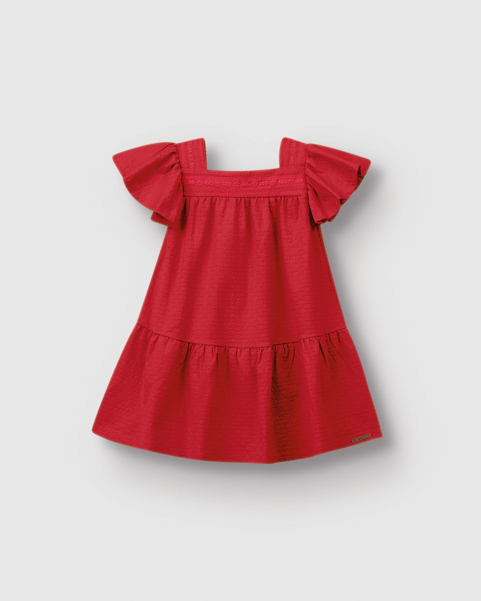 Vestido Menina Amplo Decote Quadrado Em Malha Texturizada - Carinhoso