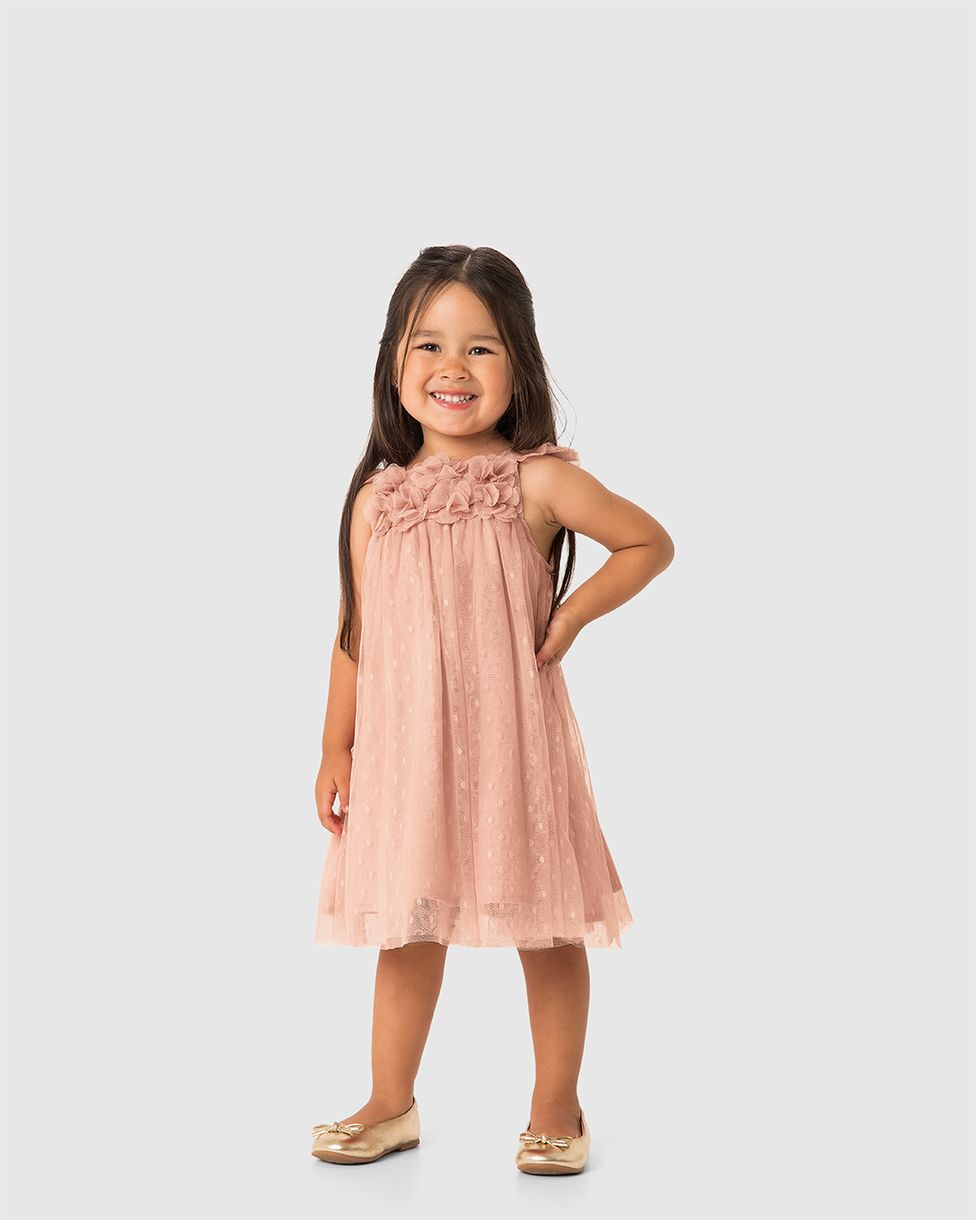 Com o Vestido Menina Amplo Detalhe Aplique Flores Em Tule - Carinhoso, sua menina estará pronta para brilhar em qualquer ocasião. Este modelo combina um design amplo e confortável com o charme delicado de flores aplicadas, resultando em uma peça encantadora e cheia de estilo.