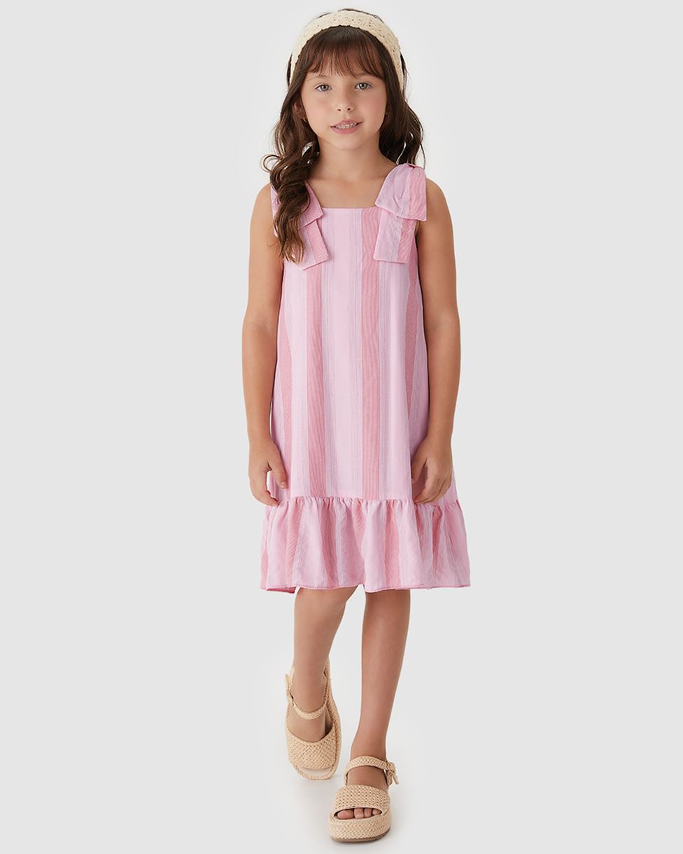 Vestido Menina Amplo Listrado Alça Laço Em Viscose Lurex - Carinhoso Rosa - 10